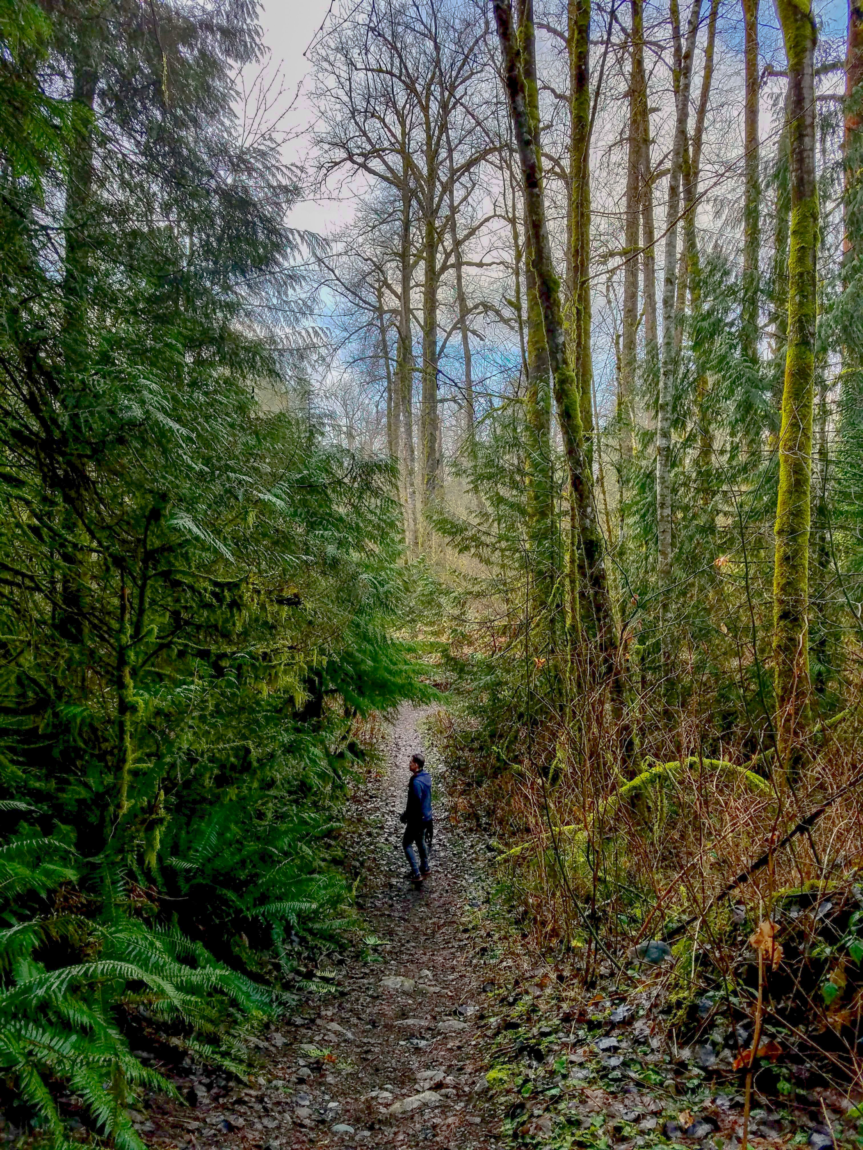 I think back to a day when my Beloved invited me to follow him down a narrow trail into a wood hushed soft with thick moss and years of gentle decay. A delicate fog enveloped us and I was certain we must have stepped into a dream. The only rushing came from the river that accompanied us. The noise in my mind settled and I breathed in air so fresh and filling I felt doubly alive. Every few steps I would stop and look up at a huge fir with branches that filled the sky. Astonished. I could not help but smile and even laugh aloud, so full was my joy. To be there, in that magical place with one who loved me walking just a few steps ahead; joy indescribable.